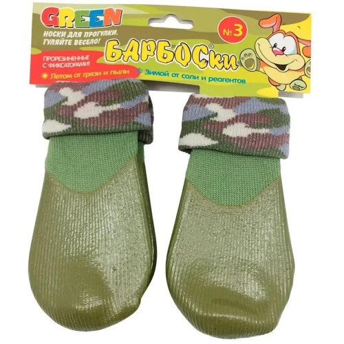 Носки для собак БАРБОСки, высокое латексное покрытие, зеленые, размер 3