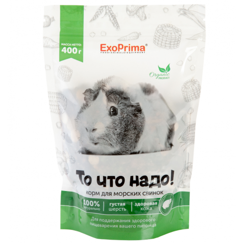 Описание: Корм для морских свинок EXOPRIMA "То что надо!" специально разработан с учетом всех особенностей пищеварительной системы морских свинок и не содержат искусственных подсластителей и консервантов. Одно из главных преимуществ нашего корма - замена костной и рыбной муки кукурузной мукой. Кукурузная мука легко усваивается организмом и способствует улучшению пищеварительного процесса у морских свинок.