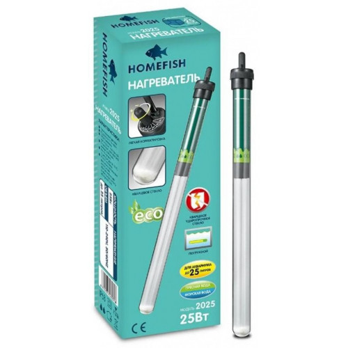 Продукция Homefish сочетает в себе долговечность, бесшумную работу, экономию энергии. Подходит для пресной и морской воды. Обогреватель HOMEFISH имеет кварцевое ударопрочное стекло, прост в установке, полностью погружной. Возможна регулировка температуры от 16 до 32С. Высококачественные материалы обеспечивают стабильную работу обогревателя.