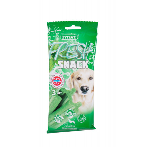 FRESH SNACK это функциональное лакомство для собак. Мята и хлорофилл освежают дыхание и оказывают антибактериальное воздействие. Благодаря специально разработанной эластичной текстуре и натуральным абразивным добавкам (мел и сода питьевая), употребление лакомства способствует снятию мягкого зубного налета и снижению уровня образования зубного камня.