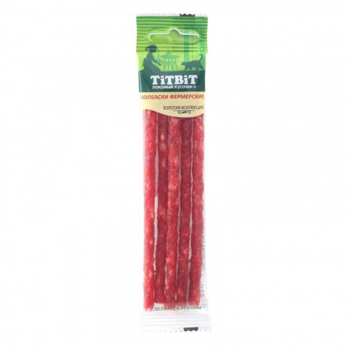 Золотая коллекция – это линейка лучших лакомств TITBIT, разработанных при участии владельцев домашних животных и их питомцев. Колбаски «Фермерские» приготовлены из отборной говядины и куриного филе, которые придутся по вкусу даже самым привередливым любимцам.