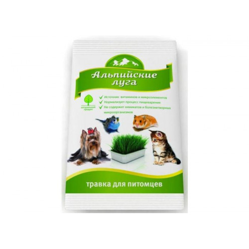 Удовлетворяет потребность поедания травы животными с пользой для здоровья и без вреда для домашних растений. "Альпийские Луга 7 трав" содержит специально подобранные травы из 7 видов растений, которые нормализуют обменные процессы в организме животного, в том числе пищеварительные, являются естественным источником клетчатки, углеводов, витаминов группы В, витаминов Е, Н, РР, минералов, незаменимых жирных кислот, каротина; стимулируют процессы очищения желудка от шерсти.