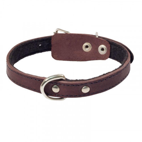 Описание: Кожаный ошейник - незаменимый аксессуар для владельцев собак всех пород и возрастов. Изделие выполнено из мягкой, но прочной кожи высокого качества с элементами из синтепона и использованием крепкой металлической фурнитуры. Предусмотренные отверстия позволяют удобно подгонять длину под индивидуальные параметры животного, а функциональное металлическое кольцо отлично подойдет для крепления карабина поводка, адресника или других аксессуаров.