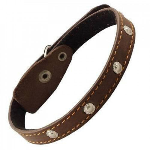 Описание: Кожаный ошейник - незаменимый аксессуар для владельцев собак всех пород и возрастов. Изделие выполнено из мягкой, но прочной кожи высокого качества с элементами из синтепона. Предусмотренные отверстия позволяют удобно подгонять длину под индивидуальные параметры животного, а функциональное металлическое кольцо отлично подойдет для крепления карабина поводка, адресника или других аксессуаров. Размеры изделия (обхват шеи, ширина, толщина): 410х15х4мм. Цвет: в ассортименте.