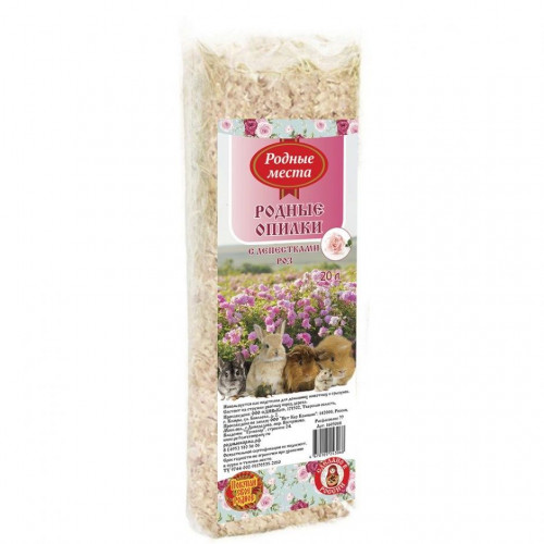 Опилки для грызунов "Родные места", с лепестками роз, 20 л, 700 г